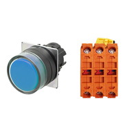 押ボタンスイッチ(φ22), 非照光, 樹脂ベゼル, フルガード形, モーメンタリ, ボタンの色: 青(不透明), IP66, ねじ端子台, 接点構成: NC/NC/NC