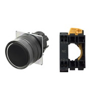 押ボタンスイッチ(φ22), 非照光, 樹脂ベゼル, フルガード形, モーメンタリ, ボタンの色: 黒(不透明), IP66, プッシュインPlus端子台, 接点構成: -/-/NC