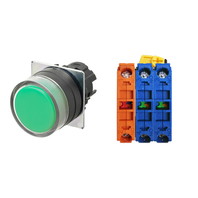 Pushbutton Switch (22-dia.), Non-lighted, Plastic bezel, Full guard, Momentary, Button color: Green (Opaque), IP66, Screw terminal block, Contacts: NO/NO/NC