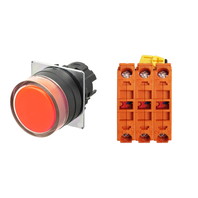 押ボタンスイッチ(φ22), 非照光, 樹脂ベゼル, フルガード形, モーメンタリ, ボタンの色: 赤(不透明), IP66, ねじ端子台, 接点構成: NC/NC/NC
