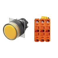 押ボタンスイッチ(φ22), 非照光, 樹脂ベゼル, フルガード形, モーメンタリ, ボタンの色: 黄(不透明), IP66, ねじ端子台, 接点構成: NC/NC/NC