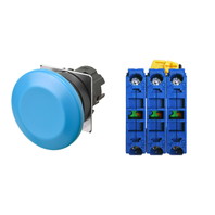 押ボタンスイッチ(φ22), 非照光, 樹脂ベゼル, きのこ形, オルタネイト, ボタンの色: 青(不透明), IP66, ねじ端子台, 接点構成: NO/NO/NO