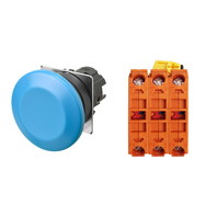 押ボタンスイッチ(φ22), 非照光, 樹脂ベゼル, きのこ形, オルタネイト, ボタンの色: 青(不透明), IP66, ねじ端子台, 接点構成: NC/NC/NC