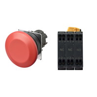 押ボタンスイッチ(φ22), 非照光, 樹脂ベゼル, きのこ形, オルタネイト, ボタンの色: 赤(不透明), IP66, プッシュインPlus端子台, 接点構成: NO/NC/NC