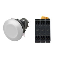押ボタンスイッチ(φ22), 非照光, 樹脂ベゼル, きのこ形, オルタネイト, ボタンの色: 白(不透明), IP66, プッシュインPlus端子台, 接点構成: NO/NO/NC