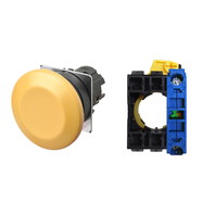 押ボタンスイッチ(φ22), 非照光, 樹脂ベゼル, きのこ形, オルタネイト, ボタンの色: 黄(不透明), IP66, ねじ端子台, 接点構成: NO/-/-