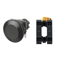 押ボタンスイッチ(φ22), 非照光, 樹脂ベゼル, きのこ形, モーメンタリ, ボタンの色: 黒(不透明), IP66, プッシュインPlus端子台, 接点構成: NC/-/NC