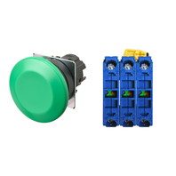 押ボタンスイッチ(φ22), 非照光, 樹脂ベゼル, きのこ形, モーメンタリ, ボタンの色: 緑(不透明), IP66, ねじ端子台, 接点構成: NO/NO/NO