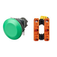 押ボタンスイッチ(φ22), 非照光, 樹脂ベゼル, きのこ形, モーメンタリ, ボタンの色: 緑(不透明), IP66, ねじ端子台, 接点構成: NC/-/NC
