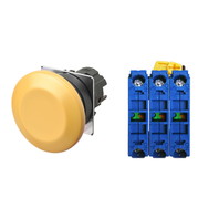 押ボタンスイッチ(φ22), 非照光, 樹脂ベゼル, きのこ形, モーメンタリ, ボタンの色: 黄(不透明), IP66, ねじ端子台, 接点構成: NO/NO/NO