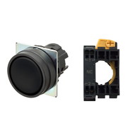 押ボタンスイッチ(φ22), 非照光, 樹脂ベゼル, 平形, オルタネイト, ボタンの色: 黒(不透明), IP66, プッシュインPlus端子台, 接点構成: -/-/NC