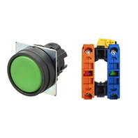 押ボタンスイッチ(φ22), 非照光, 樹脂ベゼル, 平形, オルタネイト, ボタンの色: 緑(不透明), IP66, ねじ端子台, 接点構成: NO/-/NC
