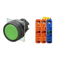 押ボタンスイッチ(φ22), 非照光, 樹脂ベゼル, 平形, オルタネイト, ボタンの色: 緑(不透明), IP66, ねじ端子台, 接点構成: NO/NC/NC