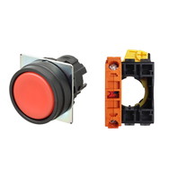 Pushbutton Switch (22-dia.), Non-lighted, Plastic bezel, Flat, Alternate, Button color: Red (Opaque), IP66, Screw terminal block, Contacts: -/-/NC