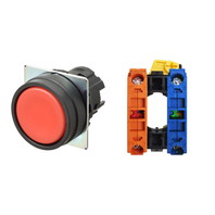 押ボタンスイッチ(φ22), 非照光, 樹脂ベゼル, 平形, オルタネイト, ボタンの色: 赤(不透明), IP66, ねじ端子台, 接点構成: NO/-/NC