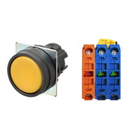 押ボタンスイッチ(φ22), 非照光, 樹脂ベゼル, 平形, オルタネイト, ボタンの色: 黄(不透明), IP66, ねじ端子台, 接点構成: NO/NO/NC