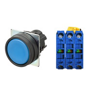 押ボタンスイッチ(φ22), 非照光, 樹脂ベゼル, 平形, モーメンタリ, ボタンの色: 青(不透明), IP66, ねじ端子台, 接点構成: NO/NO/NO