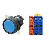 押ボタンスイッチ(φ22), 非照光, 樹脂ベゼル, 平形, モーメンタリ, ボタンの色: 青(不透明), IP66, ねじ端子台, 接点構成: NO/NO/NC
