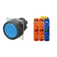 押ボタンスイッチ(φ22), 非照光, 樹脂ベゼル, 平形, モーメンタリ, ボタンの色: 青(不透明), IP66, ねじ端子台, 接点構成: NO/NC/NC