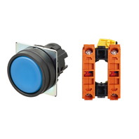 押ボタンスイッチ(φ22), 非照光, 樹脂ベゼル, 平形, モーメンタリ, ボタンの色: 青(不透明), IP66, ねじ端子台, 接点構成: NC/-/NC