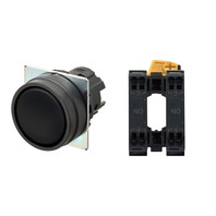押ボタンスイッチ(φ22), 非照光, 樹脂ベゼル, 平形, モーメンタリ, ボタンの色: 黒(不透明), IP66, プッシュインPlus端子台, 接点構成: NO/-/NO