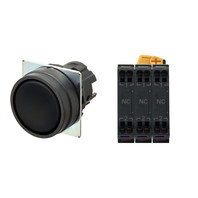 押ボタンスイッチ(φ22), 非照光, 樹脂ベゼル, 平形, モーメンタリ, ボタンの色: 黒(不透明), IP66, プッシュインPlus端子台, 接点構成: NC/NC/NC
