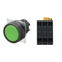 押ボタンスイッチ(φ22), 非照光, 樹脂ベゼル, 平形, モーメンタリ, ボタンの色: 緑(不透明), IP66, プッシュインPlus端子台, 接点構成: NO/NO/NC