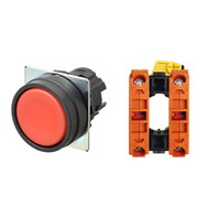 押ボタンスイッチ(φ22), 非照光, 樹脂ベゼル, 平形, モーメンタリ, ボタンの色: 赤(不透明), IP66, ねじ端子台, 接点構成: NC/-/NC
