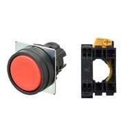 押ボタンスイッチ(φ22), 非照光, 樹脂ベゼル, 平形, モーメンタリ, ボタンの色: 赤(不透明), IP66, プッシュインPlus端子台, 接点構成: -/-/NC