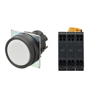 押ボタンスイッチ(φ22), 非照光, 樹脂ベゼル, 平形, モーメンタリ, ボタンの色: 白(不透明), IP66, プッシュインPlus端子台, 接点構成: NO/NC/NC