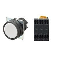 押ボタンスイッチ(φ22), 非照光, 樹脂ベゼル, 平形, モーメンタリ, ボタンの色: 白(不透明), IP66, プッシュインPlus端子台, 接点構成: NC/NC/NC