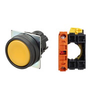 押ボタンスイッチ(φ22), 非照光, 樹脂ベゼル, 平形, モーメンタリ, ボタンの色: 黄(不透明), IP66, ねじ端子台, 接点構成: -/-/NC