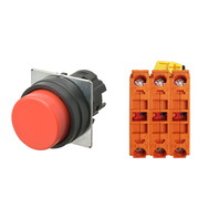 押ボタンスイッチ(φ22), 非照光, 樹脂ベゼル, 突出形, オルタネイト, ボタンの色: 赤(不透明), IP66, ねじ端子台, 接点構成: NC/NC/NC