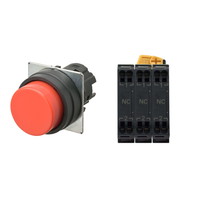 押ボタンスイッチ(φ22), 非照光, 樹脂ベゼル, 突出形, オルタネイト, ボタンの色: 赤(不透明), IP66, プッシュインPlus端子台, 接点構成: NC/NC/NC