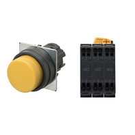 押ボタンスイッチ(φ22), 非照光, 樹脂ベゼル, 突出形, オルタネイト, ボタンの色: 黄(不透明), IP66, プッシュインPlus端子台, 接点構成: NO/NO/NO