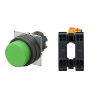 押ボタンスイッチ(φ22), 非照光, 樹脂ベゼル, 突出形, モーメンタリ, ボタンの色: 緑(不透明), IP66, プッシュインPlus端子台, 接点構成: NO/-/NC