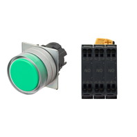 押ボタンスイッチ(φ22), 非照光, 金属ベゼル, フルガード形, オルタネイト, ボタンの色: 緑(不透明), IP66, プッシュインPlus端子台, 接点構成: NO/NO/NO