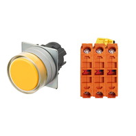 押ボタンスイッチ(φ22), 非照光, 金属ベゼル, フルガード形, オルタネイト, ボタンの色: 黄(不透明), IP66, ねじ端子台, 接点構成: NC/NC/NC