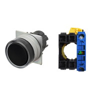 押ボタンスイッチ(φ22), 非照光, 金属ベゼル, フルガード形, モーメンタリ, ボタンの色: 黒(不透明), IP66, ねじ端子台, 接点構成: NO/-/-