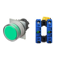 押ボタンスイッチ(φ22), 非照光, 金属ベゼル, フルガード形, モーメンタリ, ボタンの色: 緑(不透明), IP66, ねじ端子台, 接点構成: NO/-/NO
