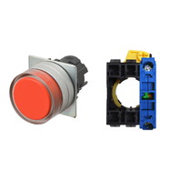 押ボタンスイッチ(φ22), 非照光, 金属ベゼル, フルガード形, モーメンタリ, ボタンの色: 赤(不透明), IP66, ねじ端子台, 接点構成: NO/-/-
