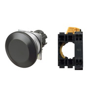 押ボタンスイッチ(φ22), 非照光, 金属ベゼル, きのこ形, オルタネイト, ボタンの色: 黒(不透明), IP66, プッシュインPlus端子台, 接点構成: NO/-/-