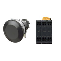 押ボタンスイッチ(φ22), 非照光, 金属ベゼル, きのこ形, オルタネイト, ボタンの色: 黒(不透明), IP66, プッシュインPlus端子台, 接点構成: NO/NO/NC