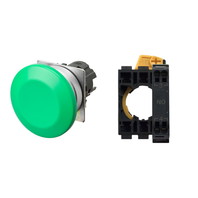 押ボタンスイッチ(φ22), 非照光, 金属ベゼル, きのこ形, オルタネイト, ボタンの色: 緑(不透明), IP66, プッシュインPlus端子台, 接点構成: NO/-/-