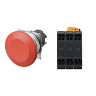 押ボタンスイッチ(φ22), 非照光, 金属ベゼル, きのこ形, オルタネイト, ボタンの色: 赤(不透明), IP66, プッシュインPlus端子台, 接点構成: NO/NO/NC
