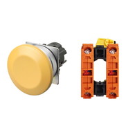 押ボタンスイッチ(φ22), 非照光, 金属ベゼル, きのこ形, オルタネイト, ボタンの色: 黄(不透明), IP66, ねじ端子台, 接点構成: NC/-/NC