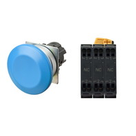 押ボタンスイッチ(φ22), 非照光, 金属ベゼル, きのこ形, モーメンタリ, ボタンの色: 青(不透明), IP66, プッシュインPlus端子台, 接点構成: NC/NC/NC