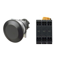 押ボタンスイッチ(φ22), 非照光, 金属ベゼル, きのこ形, モーメンタリ, ボタンの色: 黒(不透明), IP66, プッシュインPlus端子台, 接点構成: NC/NC/NC
