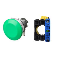 押ボタンスイッチ(φ22), 非照光, 金属ベゼル, きのこ形, モーメンタリ, ボタンの色: 緑(不透明), IP66, ねじ端子台, 接点構成: NO/-/-