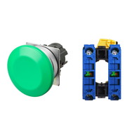 押ボタンスイッチ(φ22), 非照光, 金属ベゼル, きのこ形, モーメンタリ, ボタンの色: 緑(不透明), IP66, ねじ端子台, 接点構成: NO/-/NO